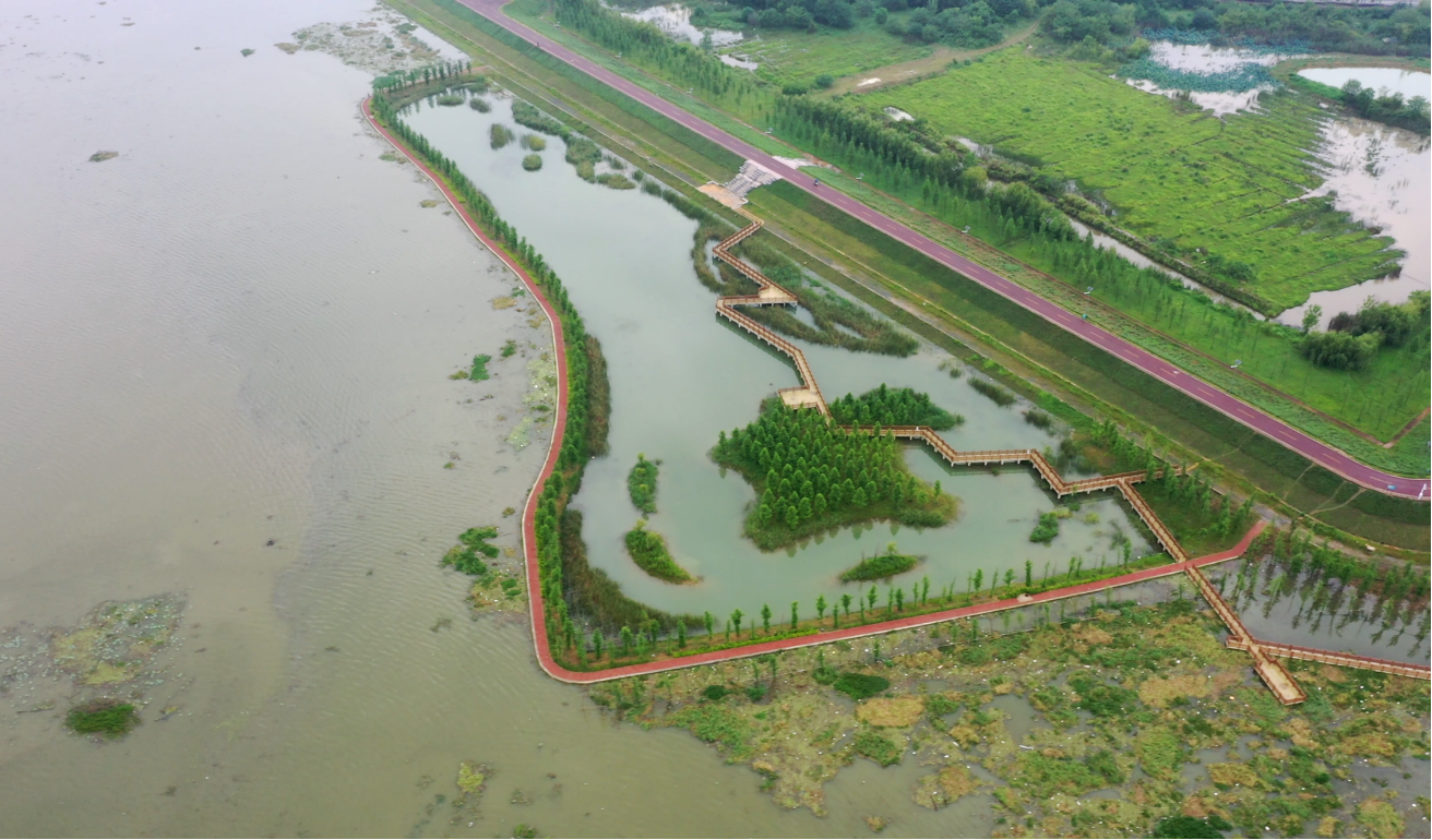 黄石市黄金山开发区磊山湖入湖口水环境综合治理(EPC)项目建设内容主要为入湖口河港和周边湖滨带的生态修复、人工湿地工程等。该项目通过湿地泡、导流槽设置,有效对污水与湖水进行隔离,使污水经过净化后流入湖泊。通过不同植物的种植搭配、边坡的巧妙设计使湖滨带得到更好的修复,形成适宜不同水生动植物生长繁殖的多样化生境。该工程的实施后,既减少水土流失,消减面源污染,又使污水得到自然净化,进一步促进了大冶湖环境保护和水质提升。
