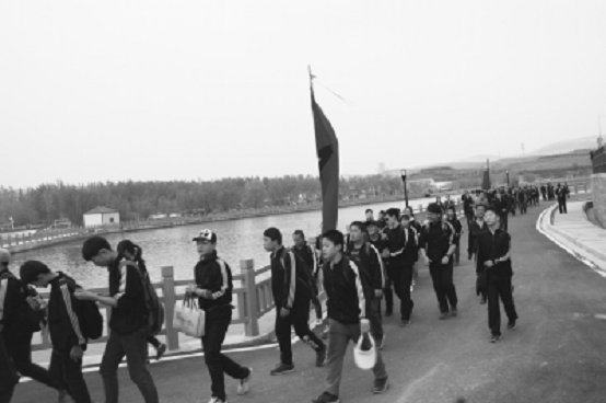 走出熙来攘往的闹市,进入泽州县金村镇水北村,经过一段乡间土路,便来到丹河人工湿地,这里水波荡漾,绿映眼帘,芦苇、香蒲郁郁葱葱、摇曳多姿,仿若到了小桥流水人家的“世外桃园”。王台中学后勤主任陈贵松说:“组织学生徒步来,也是倡导一种环保理念,同时,也让他们通过徒步检验自己的体质,提醒他们在校园生活中加强体育锻炼。”