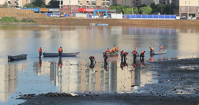 长江日报融媒体4月19日讯 4月18日,武汉开发区(汉南区)北太子湖上漂着约十艘小船,近百名工人有的坐在船上,有的站在水里,把一株株水生植物的根茎插入湖底,有如“插秧”。 “我们正是通过种植水生植物,来净化水质。”武汉开发区(汉南区)水务局相关负责人介绍,工人们栽入水中的,是苦草、黑藻等植物,这些水生植物就像海绵一样,在生长过程中,吸收水体中的营养盐,如氮、磷等。等植物长起来后,再收割起来,运走处理。这样,水体就得到了净化。 据悉,一个工人一天可插200平米左右。从3月份开始作业,目前已经栽