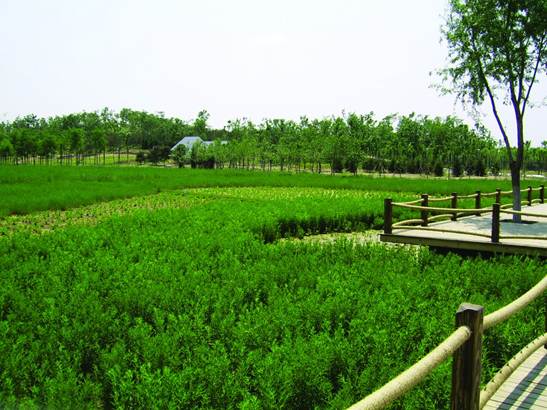 本项目湿地建造的目的是通过对清河污水处理厂尾水进行深度处理,对公园及其人工湖进行生态补水,以及其水系实施循环净化,同时营造湿地自然景观。湿地类型因地制宜的选取了侧向水平潜流构建湿地、竖向上升流构建湿地以及水平潜流、上升复合构建湿地的组合工艺。该湿地建成后,人工湖湖水保持在地表水Ⅲ类。