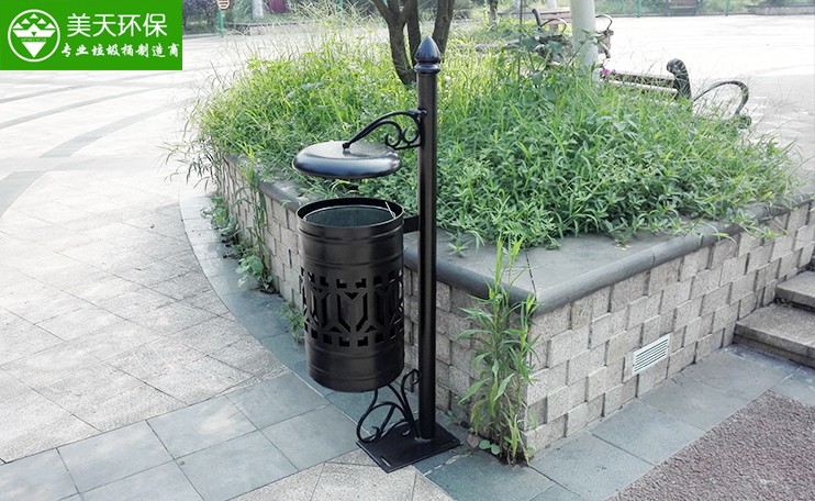 - 說明: 這款垃圾桶采用優質鋼板與鋼管制作,表面噴涂黑色油漆;造型采用歐式設計,高檔美觀。是高端小區,高檔別墅區的款式之一。