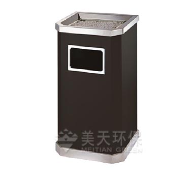 - 說明: 這款室內垃圾桶,黑色為冷軋鋼板和表層烤漆,方形桶身,垃圾投遞口置于桶側,桶頂有煙灰盒,方便滅煙和收集煙頭煙灰。桶內有內膽,方便易清潔。