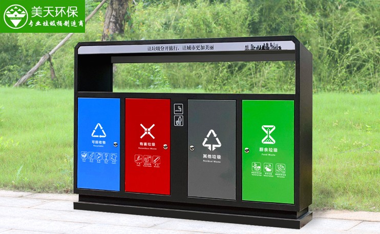 - 說明: 說明:這一款戶外垃圾桶選用優質鍍鋅鋼板裁剪、壓制、折彎后再焊接而成型;頂部弧度設計,中間大面積滅嚴板,頂部宣傳橫條,三角鎖開門拿放內桶,雙層加固底座。